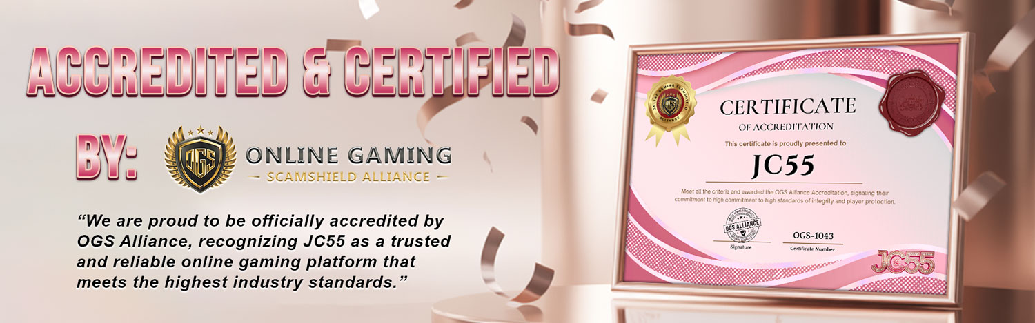 JC55 is accredited by OGS Alliance, recognized for promoting transparency, fairness, and player protection. This ensures JC55 meets strict standards in security, game integrity, and customer support. Join JC55 today—where entertainment, trust, and OGS-backed reliability go hand in hand.